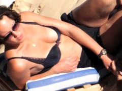 She's wanking on the beach