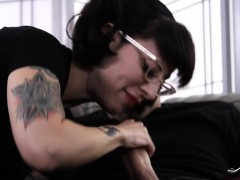 Tattooed emo girl Dollie Darko with glasses ripped real hard