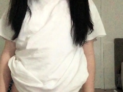 Teen ladyboy in white panties strips and jerks off on the