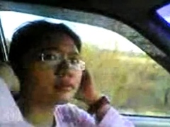 Brunette milf in fishnets fucked in taxi