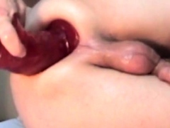 Prostate milking with HUGE dildo in Chastity till orgasm